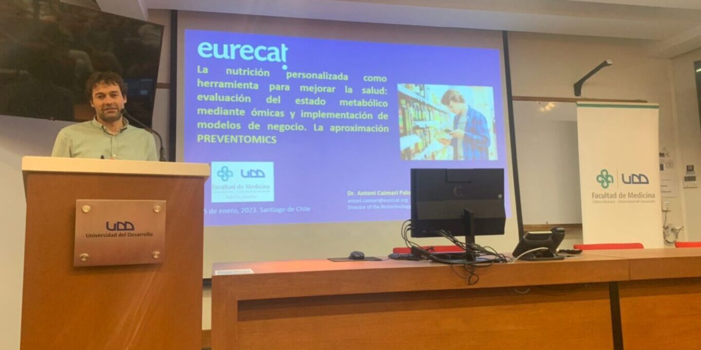 During the session, Antoni Caimari, director of the Biotechnology Area of Eurecat, delivered the presentation “Metabolomics and artificial intelligence applied to personalized nutrition” introducing PREVENTOMICS as a key European project which has developed an innovative personalised nutritional and healthy lifestyle habits recommendation system based on users’ biomarkers, eating habits and physical and behavioural characteristics to generate tailor-made plans.